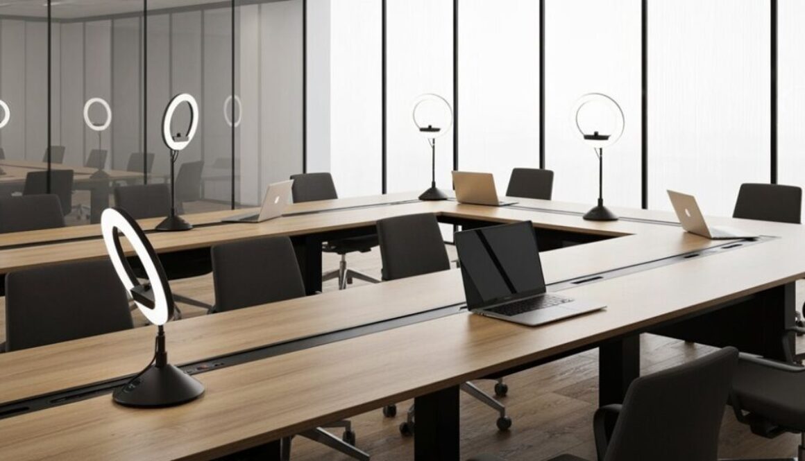 Praktische Tischdesigns, die hybride Meetings verändern — fünf optimierte Layouts für klarere Sichtlinien, saubere AV-Lösungen und chaotische-freie Zusammenarbeit, die Sie sehen wollen.